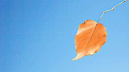old dry birch leaf closeup on a branch of a tree and a blank space for the text
