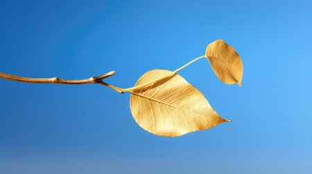 Minimalist artwork featuring two leaves floating on still water, creating a serene reflection against a soft gradient backdrop