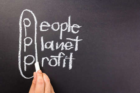 People, planet, profit, 3p marketing of sustainable business on chalkboard