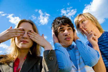 Group of men, sees no evil, hears no evil, speaks no evil