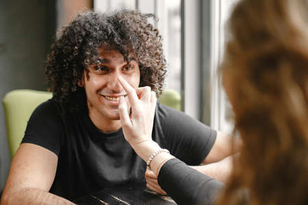 People and leisure. Lively conversation at sidewalk cafe of one adorable couple