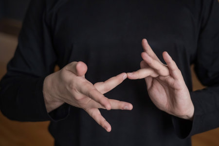 Hand position for mudra no. 6 in Jin Shin Jyutsu, alternative healing method or self-help concept, Asian medicine, awareness raising