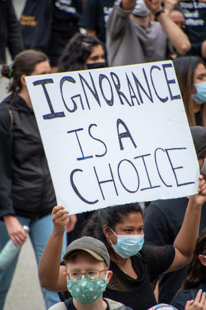 Juntenth Protestors holding up signs during anti-racism march. Vancouver BC Canada June 19th 2020