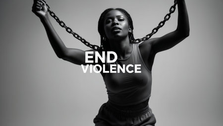 A dark-skinned woman breaks her chains. End violence. November 25.