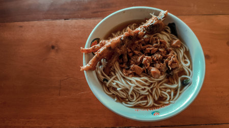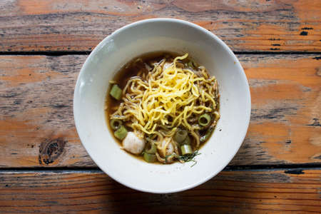 dried egg noodle with pork and meatball - Thai noodles style