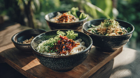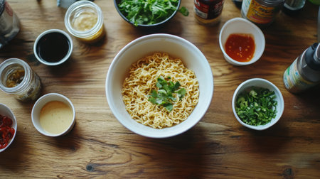 Savory Ramen Bowls: Top-Down View of Asian Noodle Soup Presentation