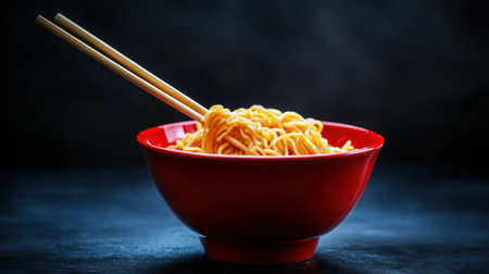 Bowl with instant noodles and chopsticks close up , generated by AI. High-quality photo