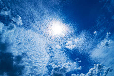 The sun shines bright in summer. Blue sky and clouds.- image toned