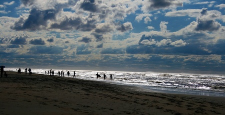 Beach in Zandvoort, Netherlands. Group people walking together along beach