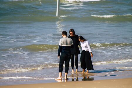 Tel Aviv Israel January 11, 2020 View of unidentified people having fun on the beach of Tel Aviv in winter