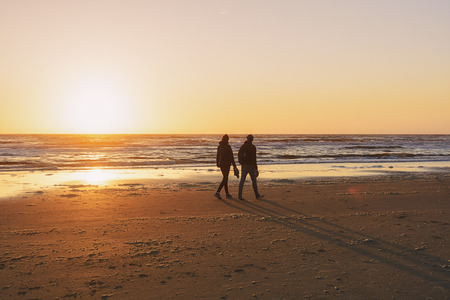 silhouette of people in dunes of north holland in the netherlands on sunny winter day