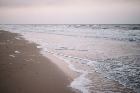 Beautiful seascape, warm autumn sunny day and the waves rolled on the sand.