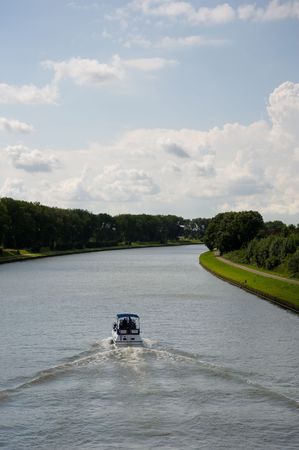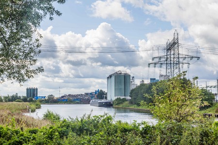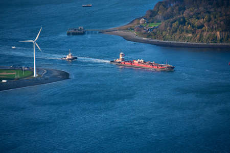 Aerial from a freighter on the Amsterdam Rijn Canal in the Netherlands