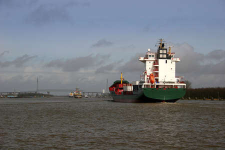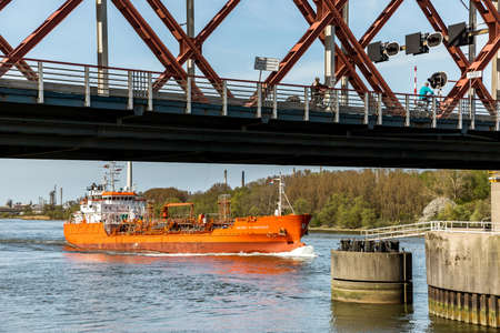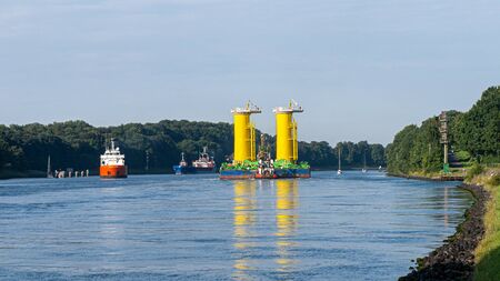 Kiel, Germany- July 24, 2017: Heavy goods transport on the Kiel Canal, in the direction of the North Sea, Germany