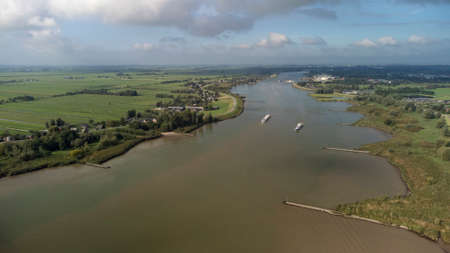 Aerial drone view of the beautiful view over the river in the Netherlands, Europe. Shot at De Lek river area in the Netherlands.