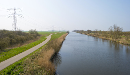 Asphalt Road along Protective Dam and Canal in the Netherlands