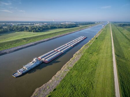 barges on Chain of Rocks Canal of MIssissippi River above St Louis - aerial view