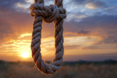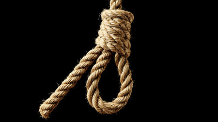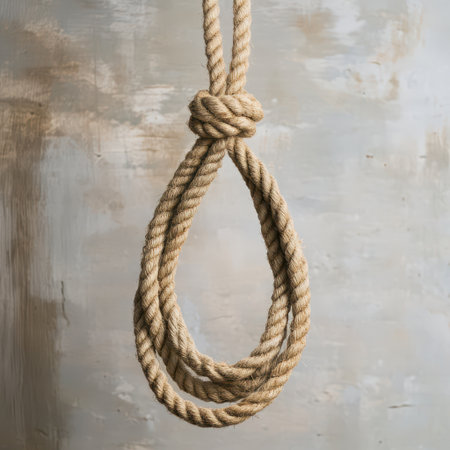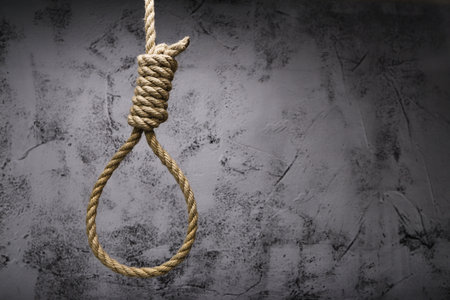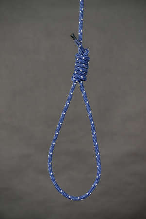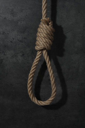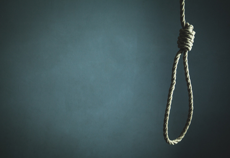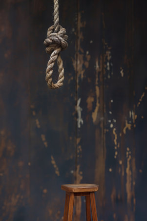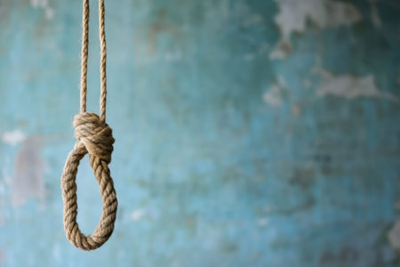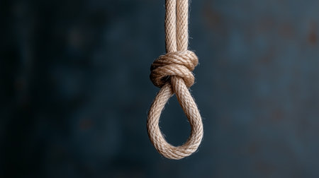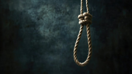 A stark image of a hanging noose, dramatically lit against a dark, moody blue background, evokes feelings of despair, hopelessness, and the weight of difficult choices.