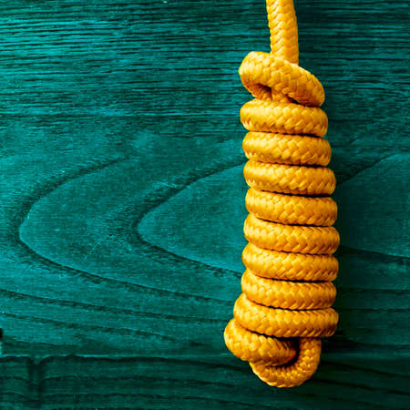 Yellow rope node on wooden background