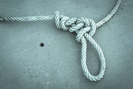 Tied rope noose against gray stone background