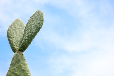 Beautiful prickly pear cactus growing against blue sky