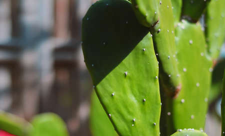 Cactus on green blured background. Close up.