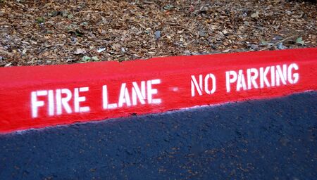 Red Painted Curb With White Sign Saying Fire Lane No Parking