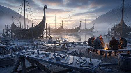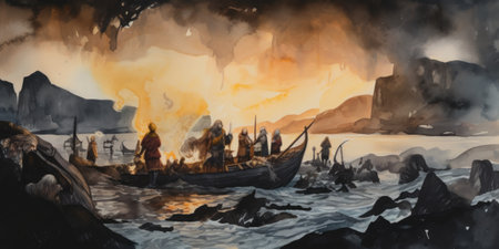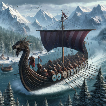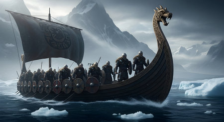 The Vikings' ship landed on the unfamiliar shore Creating using generative AI tools