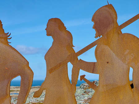 Newfoundland, CA: L'Anse aux Meadows on June 24, 2011. This iron sculpture at L'Anse aux Meadows evokes the arrival of the Norse 1000 years ago to North America.