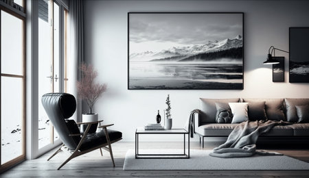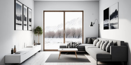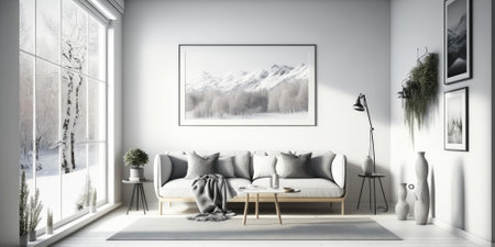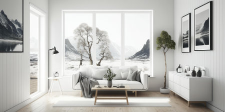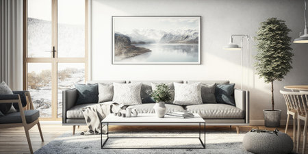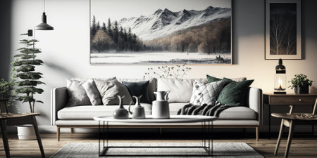 An eye catching illustration of Minimalist modern living room interior background, Scandinavian style. Created using Generative AI tools.