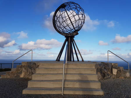 Globe monument at Nordkapp, the northern point of Europe, located in the north of Norway