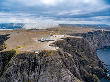 Barents Sea coast North Cape (Nordkapp) in northern Norway aerial photography.