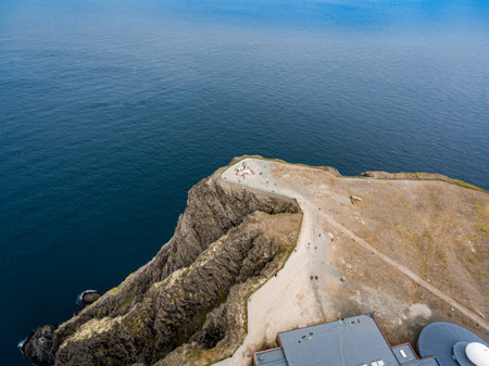 Aerial view of Nordkapp (North Cape) in the extreme part of Norway over the blue sea