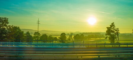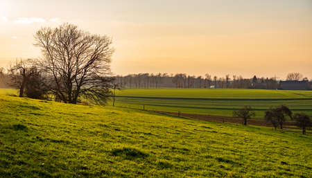 Summer Sunset in early June in the rural countryside of Germany near Bamberg in Franconia. Lovely green and orange colors