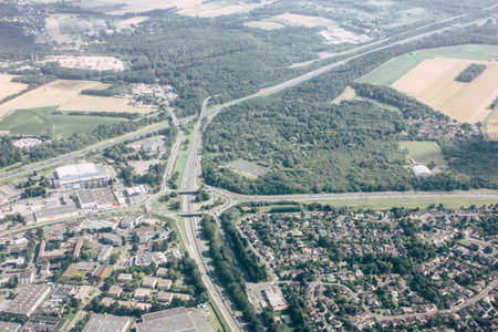 Aerial view of towns and fields in Germany.