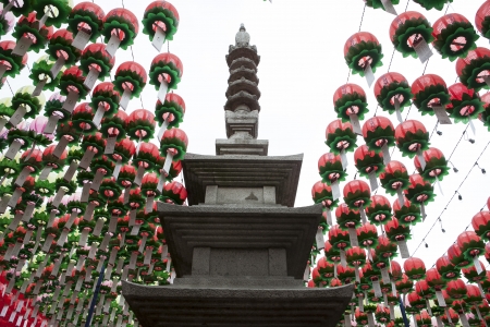 Pagoda surround by colourful lanterns in Seoul lantern festival