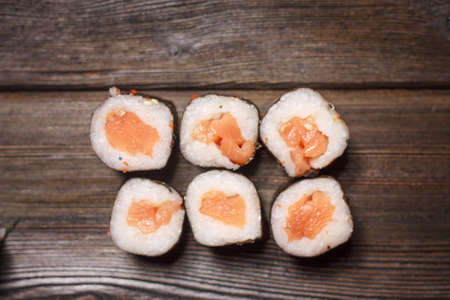 Rolls with rice and red fish. Home order roll.