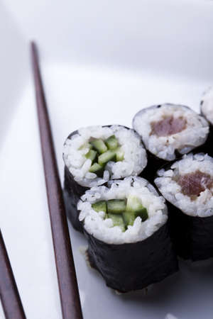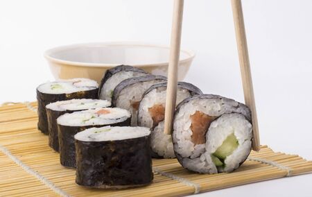 Sushi roll japanese food style on a white background.