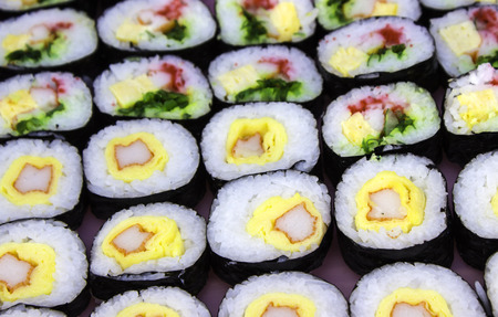sushi plate with various filling close up
