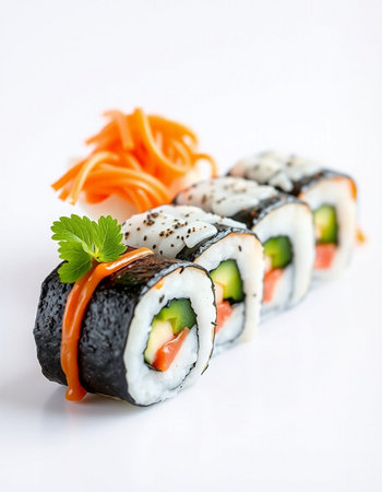 sushi rolls on a white background, close-up, horizontal