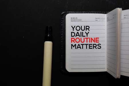 Your Daily Routine Matters. write on a book isolated on office desk