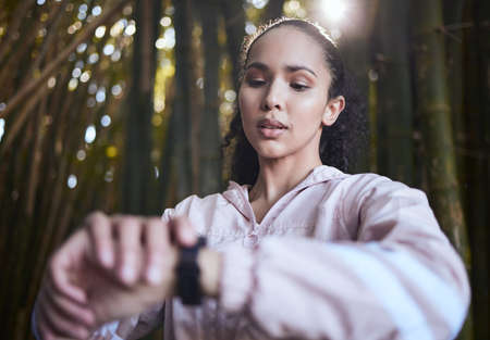 Ill do better next time. Shot of a sporty young woman checking her watch.
