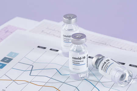 covid vaccine vial with vaccination certificate. travel and tourism during covid19 pandemic with restrictions and lockdown to stop spread the corona virus. hope is for vaccine to allow holidays