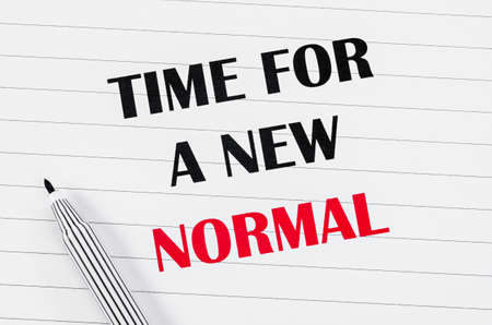 Time for a new normal with black pen on paper. Life after pandemic concept.