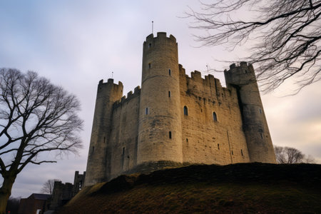 Abandoned ruins of an old castle in a cloudy day.