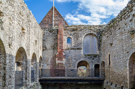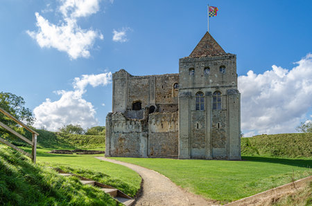 CASTLE RISING, UNITED KINGDOM - OCTOBER 10, 2014: Interior view of Castle Rising Castle, a ruined medieval fortification in the village of Castle Rising, Norfolk, England, built in 1138