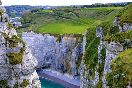 Famous cliffs in Etretat which Impressionists painted, including Monet. Small tourist town in Normandie, France