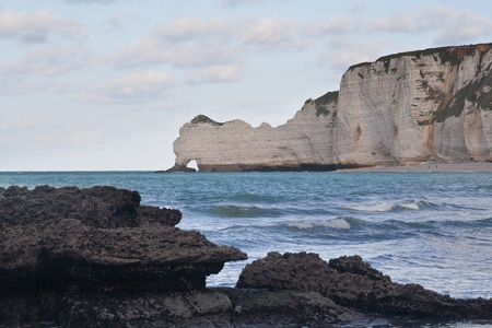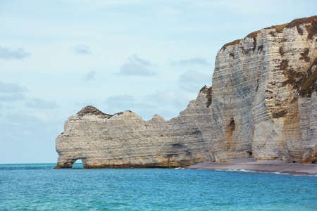 Chalk cliffs of Etretat (Normandy France) with the natural arch called Manneporte