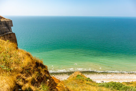 Coast with high rock formations. Normandy coast with white cliffs, near Fecamp, France