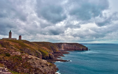Seashore with cliffs, before storm.